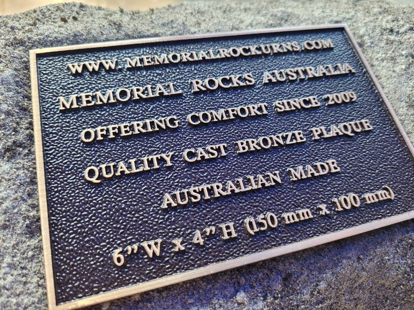 Memorial Rock Urns are a loving practical alternative for the safe keeping of a loved one's ashes. This Memorial rock has an incorporated flat indented recess space for a 150mm x 100mm x4.5mm industry standard bronze plaque. PLAQUE SOLD SEPARATELY Proudly an Australian made, original product. Operating since 2009. Regular size. Lightweight (a...