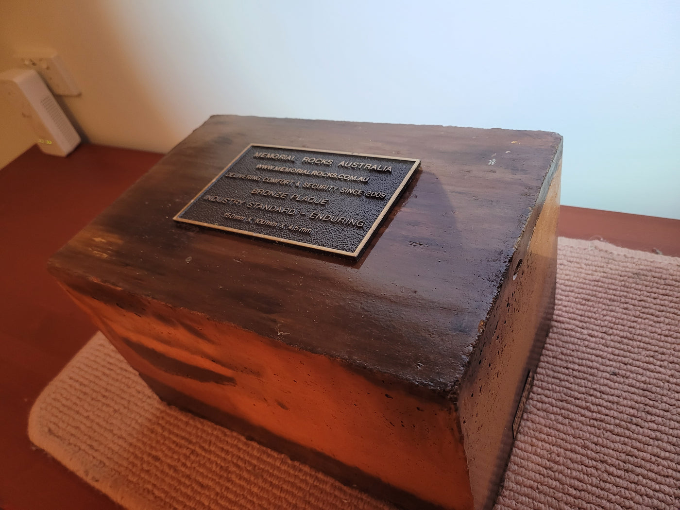 {"id":7799252549821,"title":"Indoor \/ Outdoor Memorial Urn for ashes no. 1759","handle":"indoor-outdoor-memorial-urn-for-ashes-no-1759","description":"\u003cp\u003eGFRC ( Glass Fibre Reinforced Concrete) ( silica free) Indoor\/Outdoor Memorial Urns are a loving practical alternative for the safe keeping of a loved one's ashes.\u003c\/p\u003e\n\u003cp\u003eThe individually unique colouring is not painted on but rather is impregnated as a part of the concrete. A high strength Outdoor quality sealant is then applied. \u003c\/p\u003e\n\u003cp\u003eUnlike the expensive wooden Urns often sold these extremely strong Concrete Urns are very fire resistant.\u003c\/p\u003e\n\u003cp\u003eMultiple Indoor\/ Outdoor Urns can also be stacked forming a Family Memorial Wall.\u003c\/p\u003e\n\u003cp\u003eThis Memorial Urn can accommodate a recommended 150mm x 100mm x4.5mm industry standard bronze plaque. Rectangular or Heart Shaped. \u003c\/p\u003e\n\u003cp\u003ePLAQUE SOLD SEPARATELY \u003c\/p\u003e\n\u003cp\u003eProudly an Australian made, original product. Operating since 2009.\u003c\/p\u003e\n\u003cp\u003eRegular size.\u003c\/p\u003e\n\u003cp\u003eLightweight (approx. 15 kg) Memorial indoor\/outdoor Urn with a sealable internal cavity for the safe-keeping of a loved one's ashes. Holds one standard Australian sized ash container. (250mm x 150mm x 120mm)\u003c\/p\u003e\n\u003cp\u003eA concrete backing plate and adhesive are supplied.\u003c\/p\u003e\n\u003cp\u003eSize External : 320mm x 220mm x 180mm. Internal : 270mm x 160mm x 140mm \u003c\/p\u003e\n\u003cp\u003eA high quality bronze plaque of your choice can also be purchased and can affixed prior to shipping if you wish. A 150mm x 100mm x 4.5 mm Plaque Rectangular or Heart Shaped) is the correct size plaque for the regular sized Indoor \/ Outdoor Memorial Urn.\u003c\/p\u003e\n\u003cp\u003e GST and Free Australia wide delivery is included .\u003c\/p\u003e\n\u003cp\u003e\u003cspan\u003eThe blue plastic cremation urn is photographed for display purposes and to reassure customers that the standard sized Australian cremation urn will fit comfortably.\u003c\/span\u003e\u003c\/p\u003e\n\u003cp\u003ePlease call 0413770272 to arrange to visit our Gold Coast display if you wish to view our full range personally.\u003c\/p\u003e\n\u003cp\u003eIf you have difficulties with local transport, a sample display may be able to come to you.\u003c\/p\u003e\n\u003cp\u003eWe are also able to receive and inter a loved one's ashes if you wish. \u003c\/p\u003e\n\u003cp\u003ePlease contact us any time if You have any questions. \u003c\/p\u003e\n\u003cp\u003eCovit 19 protocols are in place.\u003c\/p\u003e\n\u003cp\u003eWe hope our Indoor \/ Outdoor Memorial Urn will bring some comfort.\u003c\/p\u003e\n\u003cp\u003eAll the Best, Bud and Shinta Manthey. MRA \u003c\/p\u003e\n\u003cp\u003eNOTE: Payment of order can be made easily and securely with a Credit Card or Paypal. You do not need to join Paypal. For an alternative payment arrangement, please call us.\u003c\/p\u003e\n\u003cp\u003eTo buy, simply click \"Add to Cart\".\u003c\/p\u003e\n\u003cp\u003eTo see order, click \"View Cart\", then to pay click \"Check out\".\u003c\/p\u003e\n\u003cp\u003ePayment can be made in 4 installments by using the \" Afterpay \" facility. \u003c\/p\u003e\n\u003cp\u003eFor assistance please call Bud on 0413 770 272.\u003c\/p\u003e\n\u003cdiv\u003e\u003c\/div\u003e","published_at":"2024-06-07T18:40:27+10:00","created_at":"2024-06-07T18:40:28+10:00","vendor":"MRA","type":"Memorial Rock","tags":["ash interment","box urn","casket","concrete box urn","concrete capsule","concrete cremation urn","concrete urn","concrete vault","cremation urn for buffet","cremation urn for home","cremation urn for home furnishing","cremation urn for interior design","Garden Urn Urn of remembrance","home decor","indoor unrs","Indoor Urn for ashes","indoor urns","keepsake","memorial rock","memorial stone","Memorial Stone for Garden","Memorial Stone Plaque","Memorial Stones For Gardens","Memorial Urn","personalised gift for loved ones","Pet Memorial Rock","Remembrance","small memorial rock urn","Stone of Remembrace","Urn","urn for ashes","Urns","urns for buffet","vault","Vaults"],"price":50000,"price_min":50000,"price_max":50000,"available":true,"price_varies":false,"compare_at_price":62500,"compare_at_price_min":62500,"compare_at_price_max":62500,"compare_at_price_varies":false,"variants":[{"id":44057787957437,"title":"Default Title","option1":"Default Title","option2":null,"option3":null,"sku":"1759","requires_shipping":true,"taxable":true,"featured_image":null,"available":true,"name":"Indoor \/ Outdoor Memorial Urn for ashes no. 1759","public_title":null,"options":["Default Title"],"price":50000,"weight":10000,"compare_at_price":62500,"inventory_quantity":1,"inventory_management":"shopify","inventory_policy":"deny","barcode":"","requires_selling_plan":false,"selling_plan_allocations":[]}],"images":["\/\/www.memorialrockurns.com\/cdn\/shop\/files\/20240607-181415.jpg?v=1717749884","\/\/www.memorialrockurns.com\/cdn\/shop\/files\/20240607-181325.jpg?v=1717749884","\/\/www.memorialrockurns.com\/cdn\/shop\/files\/20240607-181322.jpg?v=1717749884","\/\/www.memorialrockurns.com\/cdn\/shop\/files\/20240607-181336.jpg?v=1717749884","\/\/www.memorialrockurns.com\/cdn\/shop\/files\/20240607-181426.jpg?v=1717749884","\/\/www.memorialrockurns.com\/cdn\/shop\/files\/20240607-181011.jpg?v=1717749884","\/\/www.memorialrockurns.com\/cdn\/shop\/files\/20240607-180920.jpg?v=1717749884","\/\/www.memorialrockurns.com\/cdn\/shop\/files\/20240607-180958.jpg?v=1717749884","\/\/www.memorialrockurns.com\/cdn\/shop\/files\/20240607-181044.jpg?v=1717749884","\/\/www.memorialrockurns.com\/cdn\/shop\/files\/20240607-181058.jpg?v=1717749884","\/\/www.memorialrockurns.com\/cdn\/shop\/files\/20240607-181112.jpg?v=1717749884","\/\/www.memorialrockurns.com\/cdn\/shop\/files\/20240607-181353.jpg?v=1717749884","\/\/www.memorialrockurns.com\/cdn\/shop\/files\/2