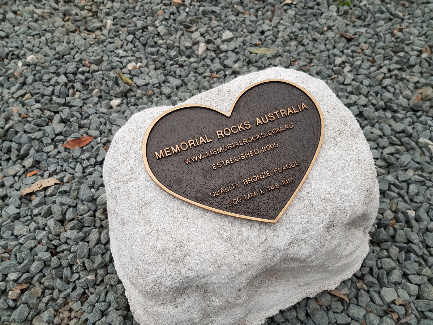 Memorial Rock Urns are a loving practical alternative for the safe keeping of a loved one's ashes. This Memorial rock has an incorporated flat space for up to a 180mm x 120mm x 4.5mm Plaque or our heart plaque. (200mm x 150mm) PLAQUE SOLD SEPARATELY The blue plastic standard Australian sized cremation urn seen in the pictures demonstrates the ...
