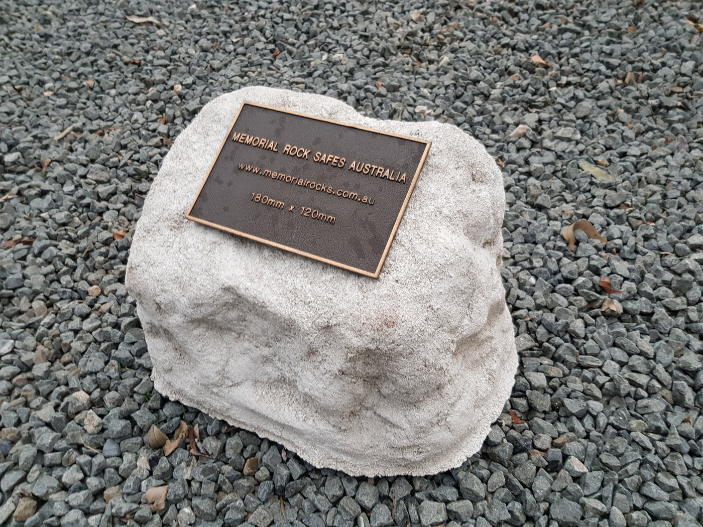 Memorial Rock Urns are a loving practical alternative for the safe keeping of a loved one's ashes. This Memorial rock has an incorporated flat space for up to a 180mm x 120mm x 4.5mm Plaque or our heart plaque. (200mm x 150mm) PLAQUE SOLD SEPARATELY The blue plastic standard Australian sized cremation urn seen in the pictures demonstrates the ...