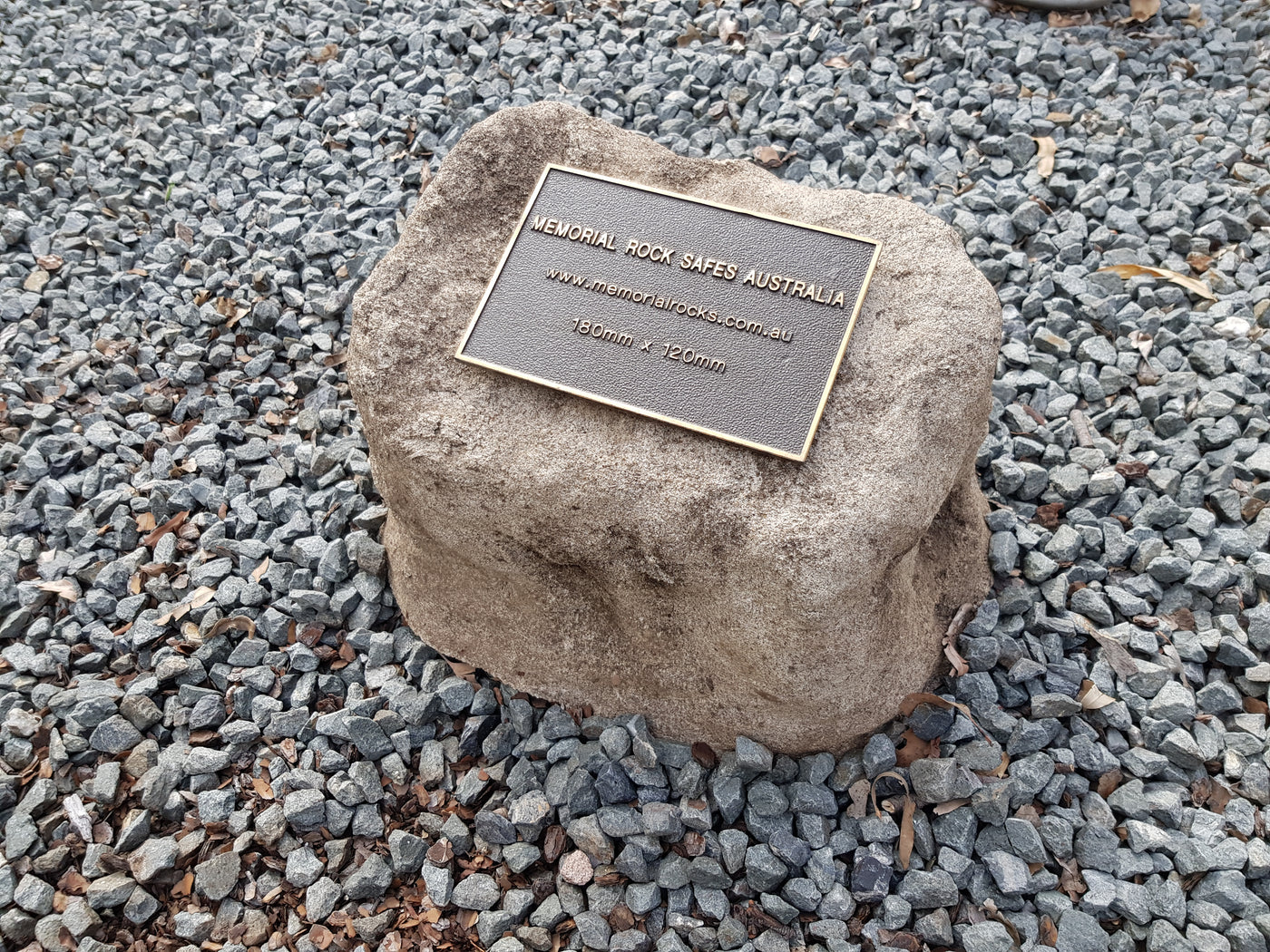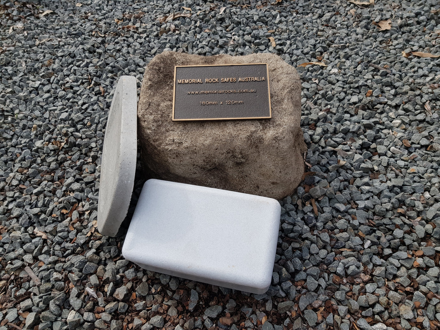 Memorial Rock Urns are a loving practical alternative for the safe keeping of a loved one's ashes. This Memorial rock has an incorporated flat space for up to a 180mm x 120mm x 4.5mm Plaque or our heart plaque. (200mm x 150mm) PLAQUE SOLD SEPARATELY The blue plastic standard Australian sized cremation urn seen in the pictures demonstrates the ...