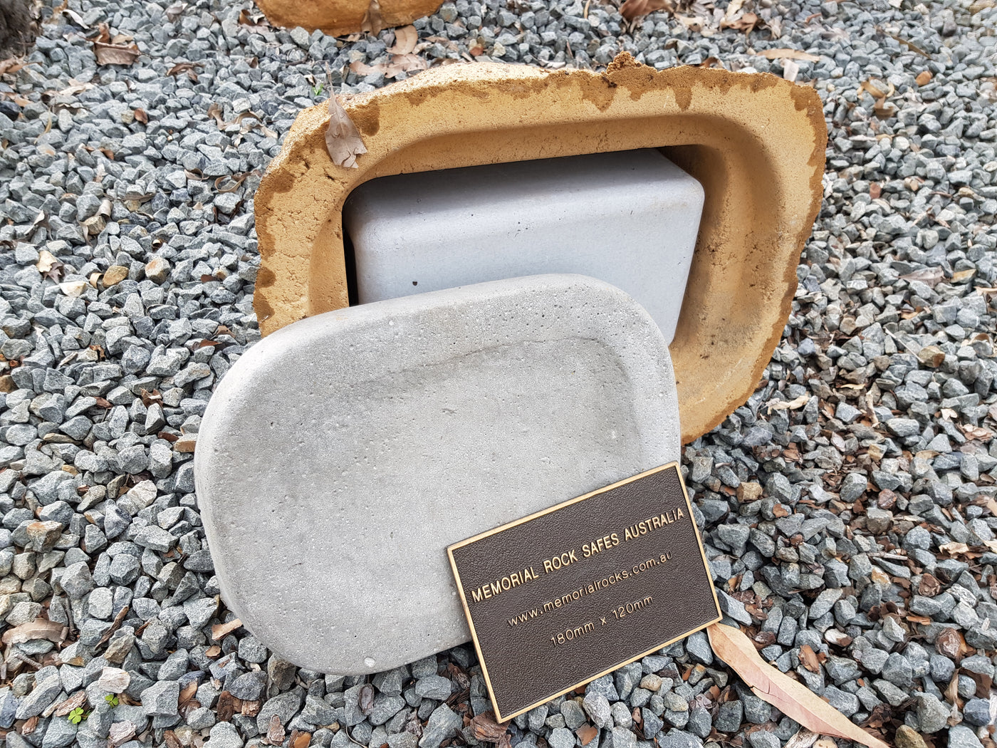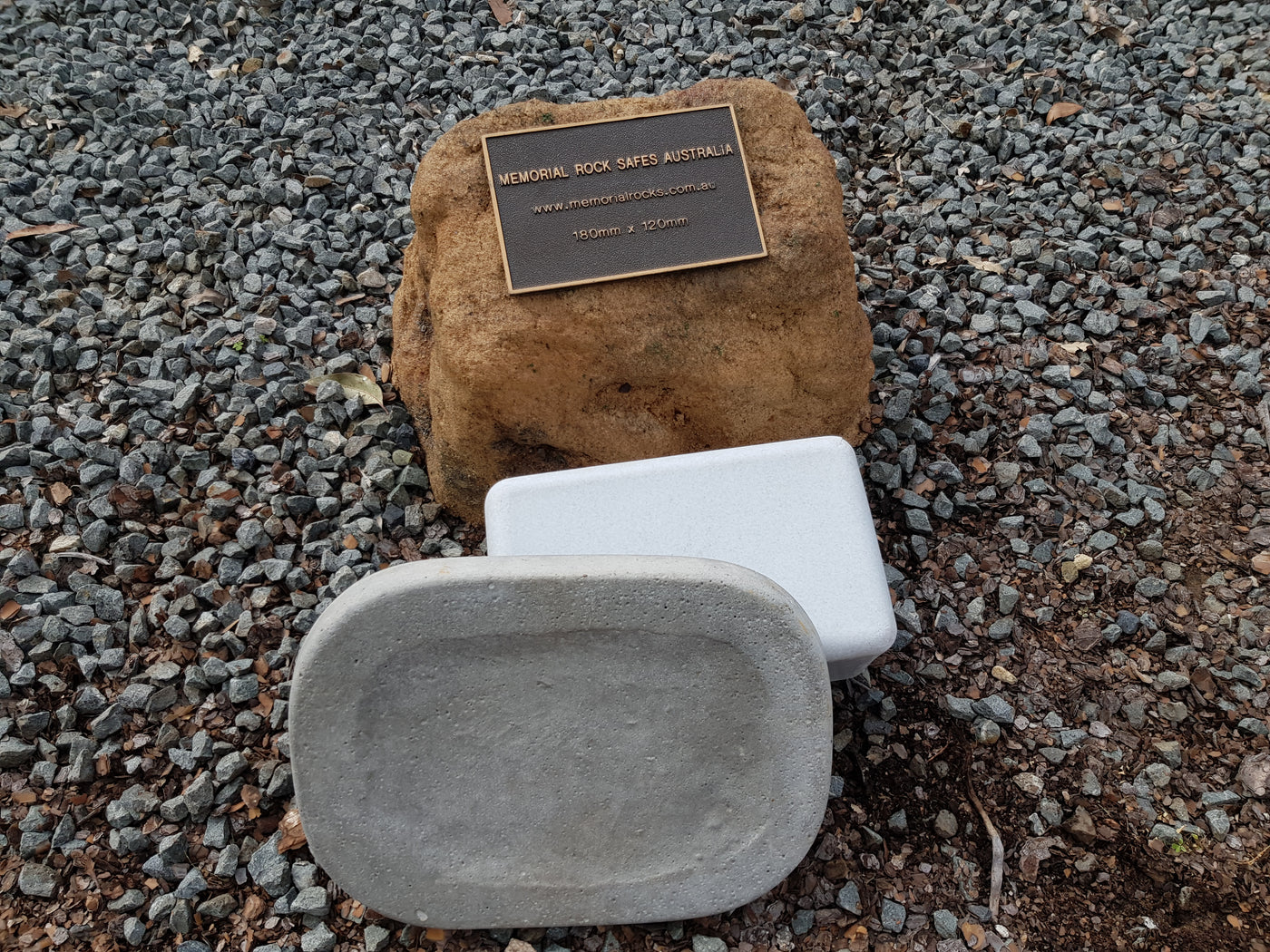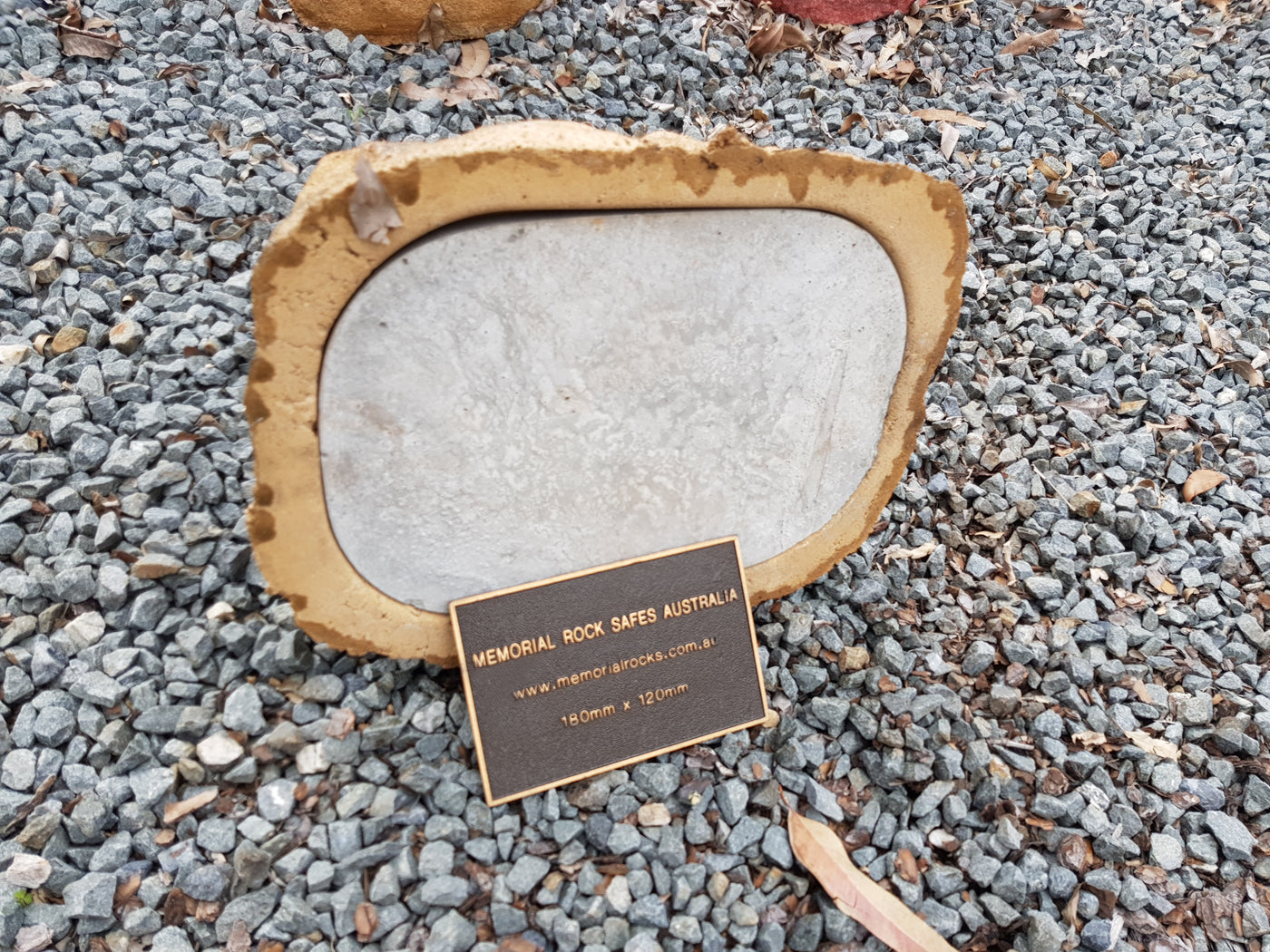 Memorial Rock Urns are a loving practical alternative for the safe keeping of a loved one's ashes. This Memorial rock has an incorporated flat space for up to a 180mm x 120mm x 4.5mm Plaque or our heart plaque. (200mm x 150mm) PLAQUE SOLD SEPARATELY The blue plastic standard Australian sized cremation urn seen in the pictures demonstrates the ...