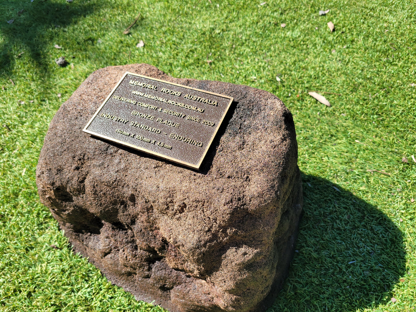 Memorial Rock Urns are a loving practical alternative for the safe keeping of a loved one's ashes. This Memorial rock has an incorporated flat space for up to a 180mm x 120mm x 4.5mm Plaque or our heart plaque. (200mm x 150mm) PLAQUE SOLD SEPARATELY The blue plastic standard Australian sized cremation urn seen in the pictures demonstrates the ...
