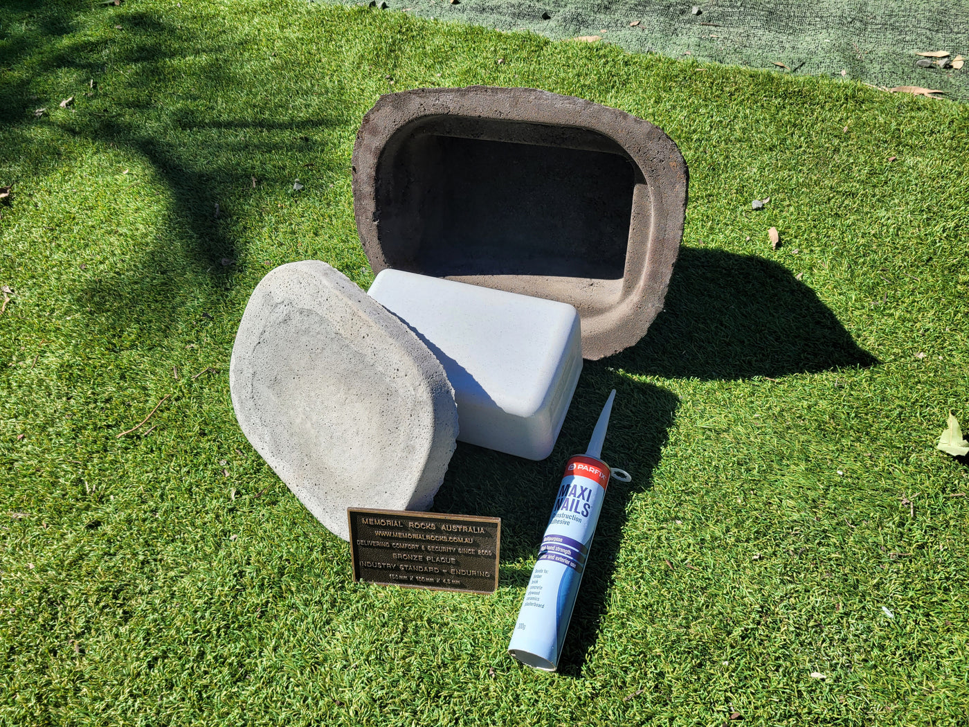Memorial Rock Urns are a loving practical alternative for the safe keeping of a loved one's ashes. This Memorial rock has an incorporated flat space for up to a 180mm x 120mm x 4.5mm Plaque or our heart plaque. (200mm x 150mm) PLAQUE SOLD SEPARATELY The blue plastic standard Australian sized cremation urn seen in the pictures demonstrates the ...