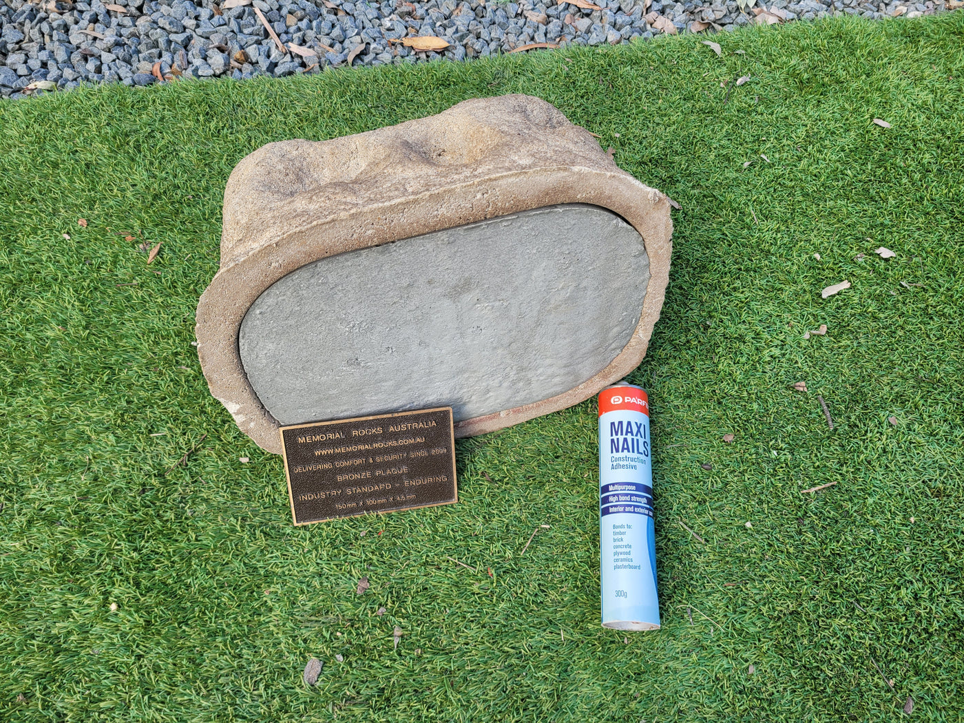 Memorial Rock Urns are a loving practical alternative for the safe keeping of a loved one's ashes. This Memorial rock has an incorporated flat space for up to a 180mm x 120mm x 4.5mm Plaque or our heart plaque. (200mm x 150mm) PLAQUE SOLD SEPARATELY The blue plastic standard Australian sized cremation urn seen in the pictures demonstrates the ...