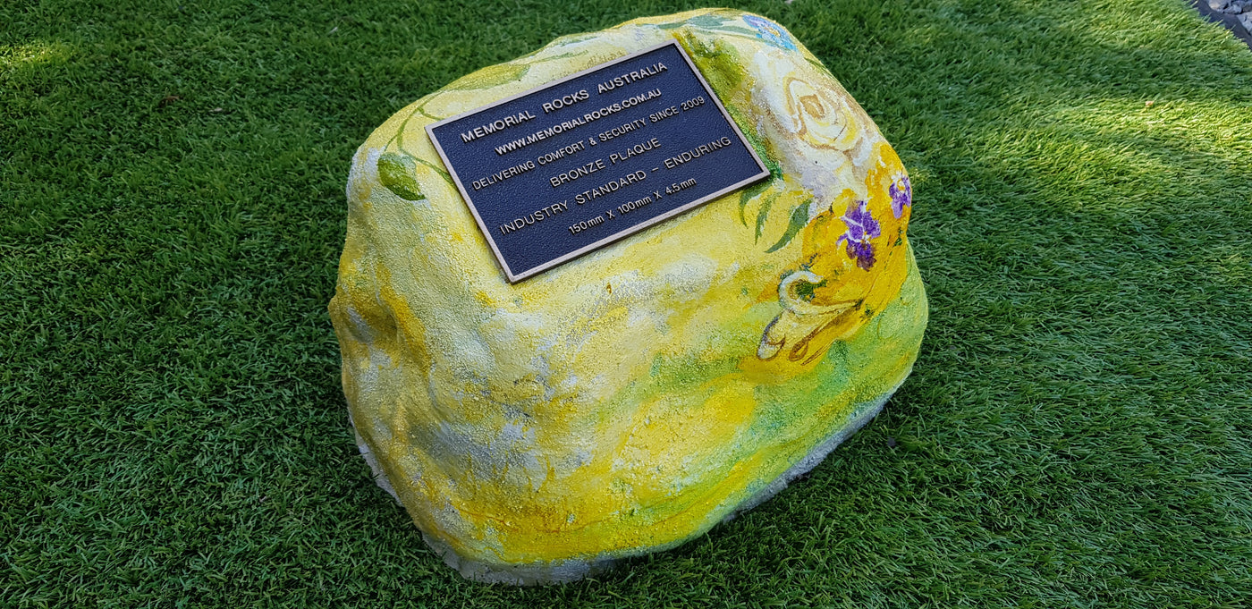 Memorial Rock Urns are a loving practical alternative for the safe keeping of a loved one's ashes. This Memorial Rock Urn has a small internal sealed container for partial ash interment. This Partial Ash Urn Memorial rock has an incorporated flat space for a 100 mm x 75mm x4.5mm industry standard bronze plaque. Proudly Australian made, origin...