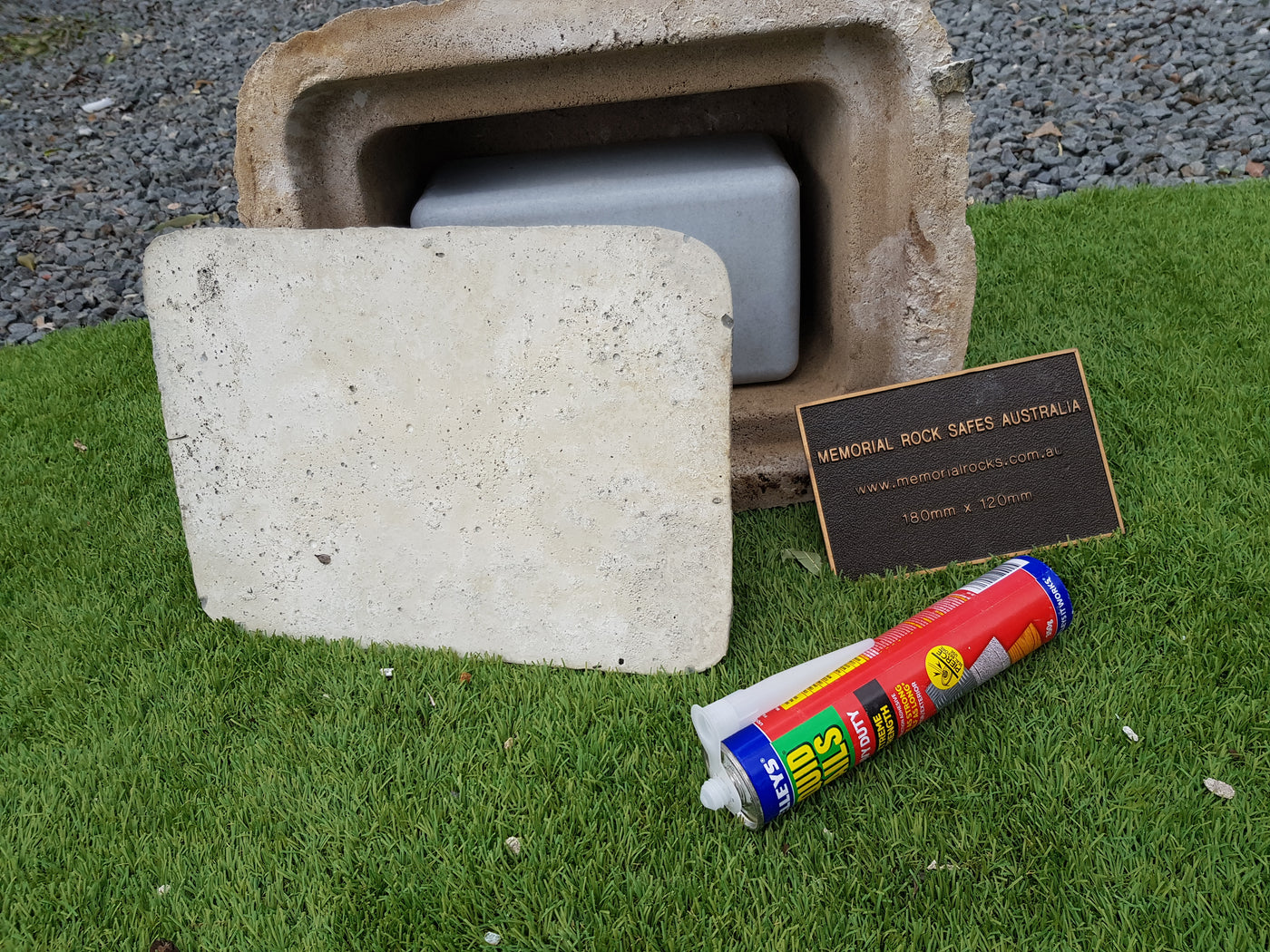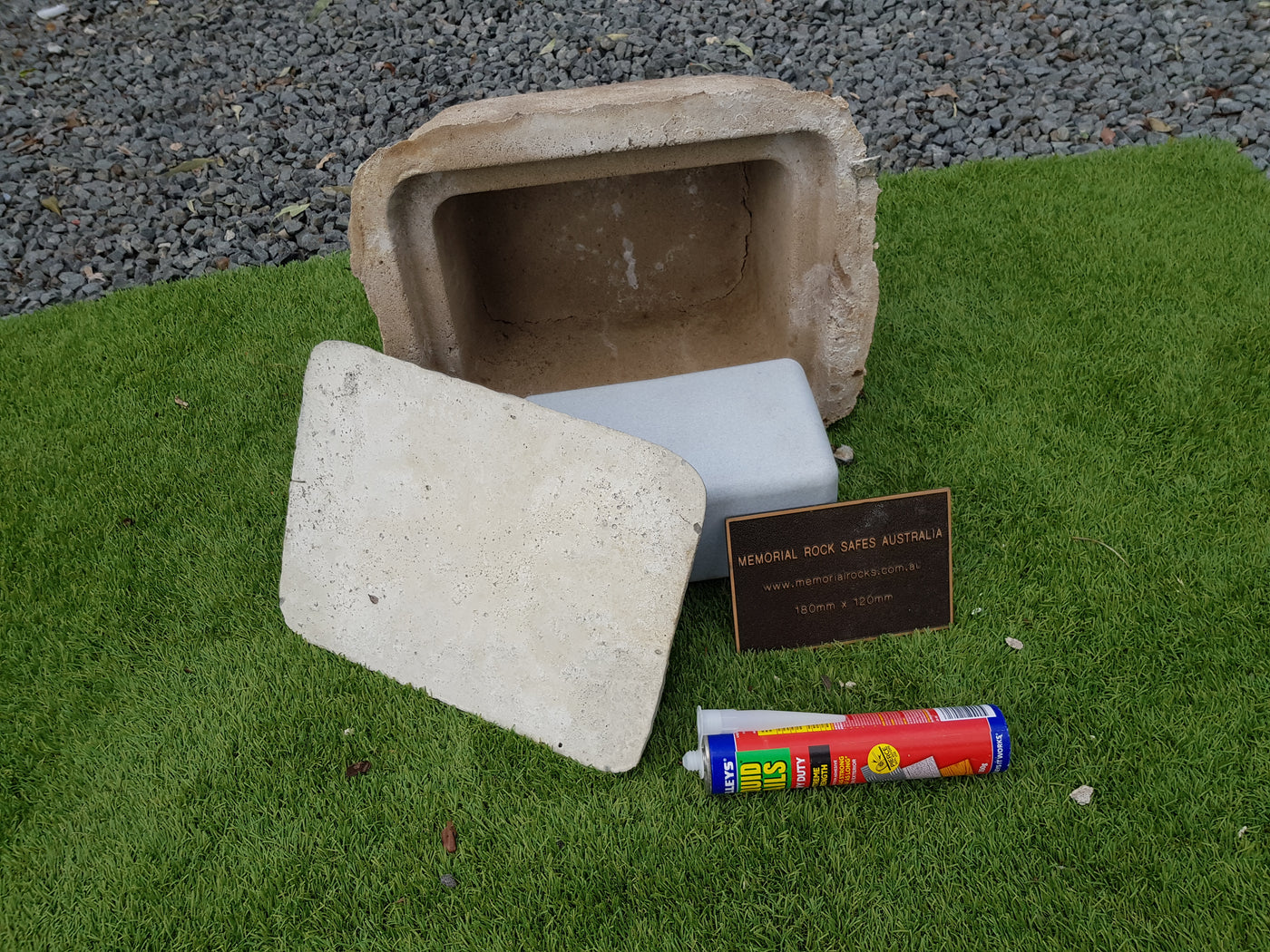 Memorial Rock Urns are a loving practical alternative for the safe keeping of a loved one's ashes. This Memorial Rock Urn has a small internal sealed container for partial ash interment. This Partial Ash Urn Memorial rock has an incorporated flat space for a 100 mm x 75mm x4.5mm industry standard bronze plaque. Proudly Australian made, origin...