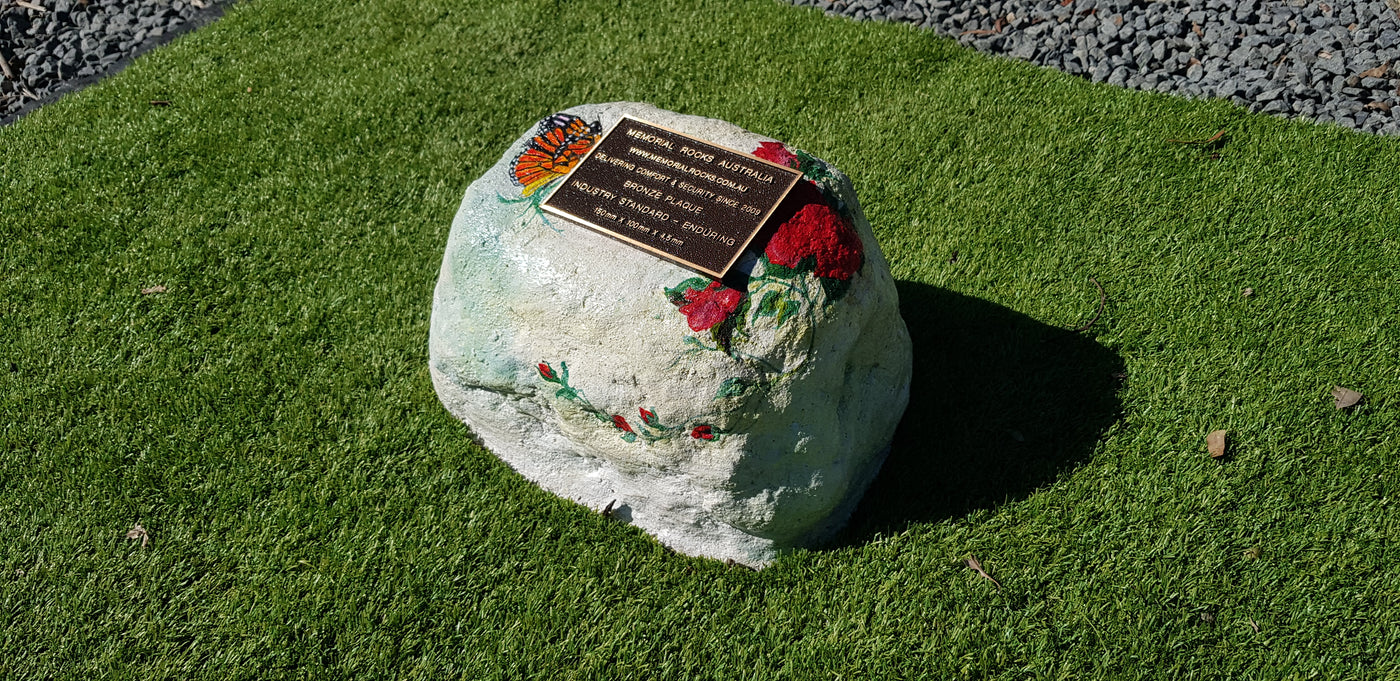 Memorial Rock Urns are a loving practical alternative for the safe keeping of a loved one's ashes. This Memorial Rock Urn has a small internal sealed container for partial ash interment. This Partial Ash Urn Memorial rock has an incorporated flat space for a 100 mm x 75mm x4.5mm industry standard bronze plaque. Proudly Australian made, origin...