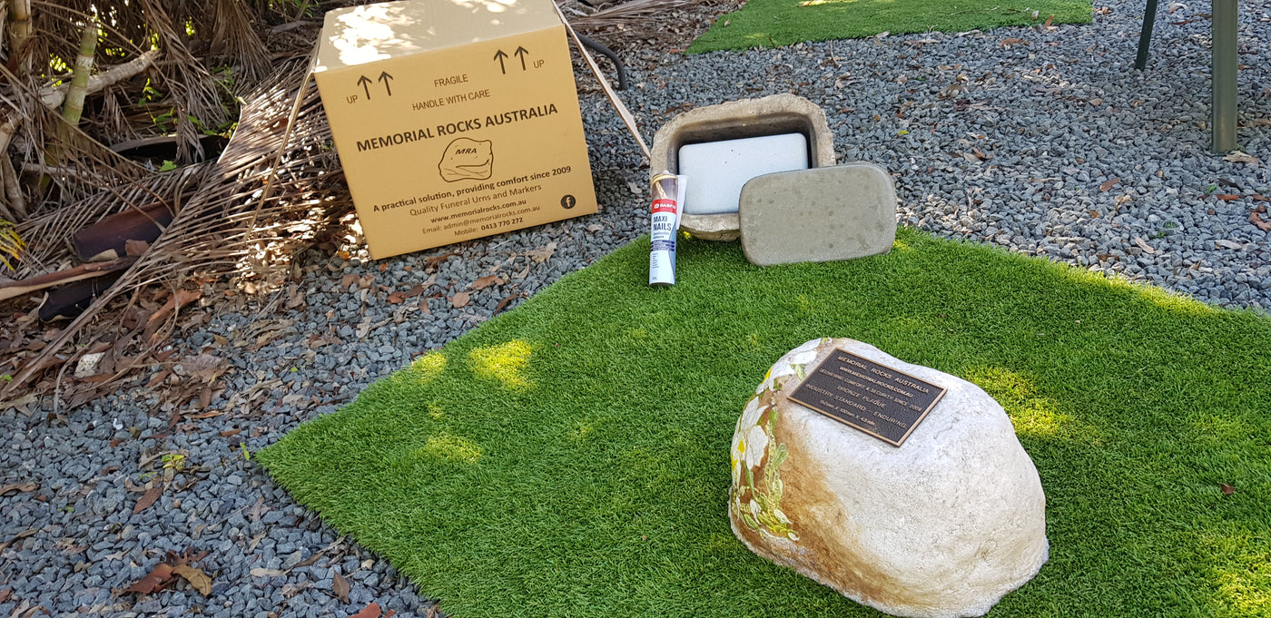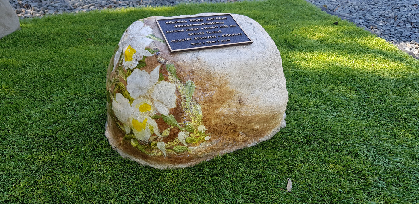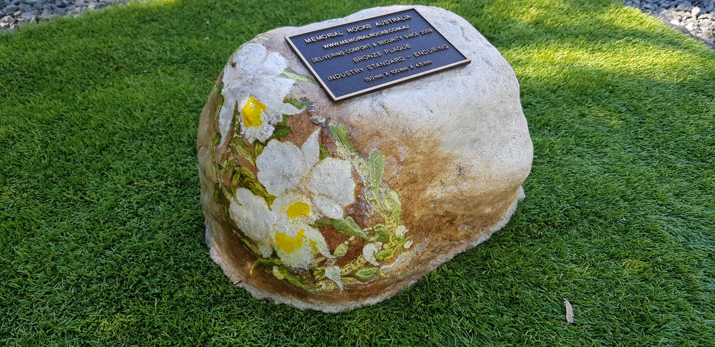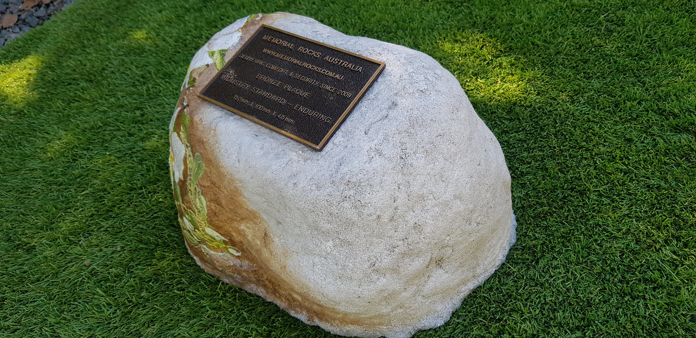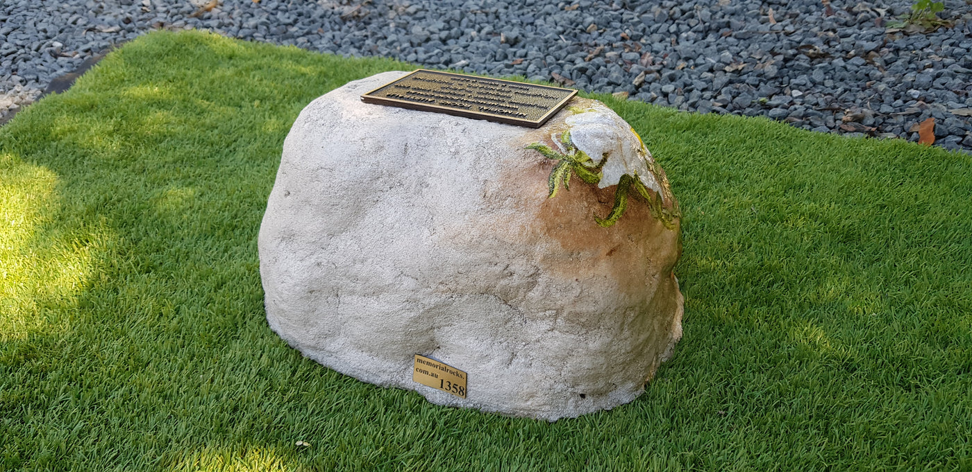 Memorial Rock Urns are a loving practical alternative for the safe keeping of a loved one's ashes. This Memorial Rock Urn has a small internal sealed container for partial ash interment. This Partial Ash Urn Memorial rock has an incorporated flat space for a 100 mm x 75mm x4.5mm industry standard bronze plaque. Proudly Australian made, origin...