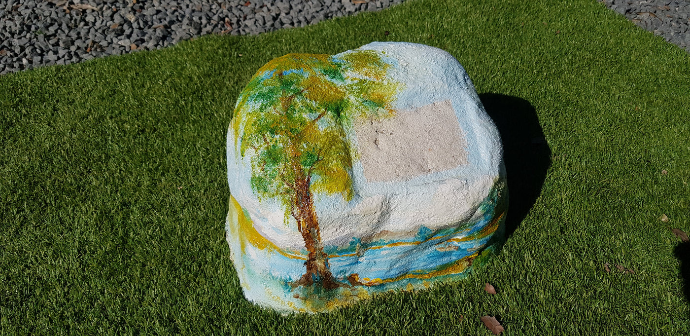 Memorial Rock Urns are a loving practical alternative for the safe keeping of a loved one's ashes. This Memorial Rock Urn has a small internal sealed container for partial ash interment. This Partial Ash Urn Memorial rock has an incorporated flat space for a 100 mm x 75mm x4.5mm industry standard bronze plaque. PLAQUE SOLD SEPARATELY Proudly...