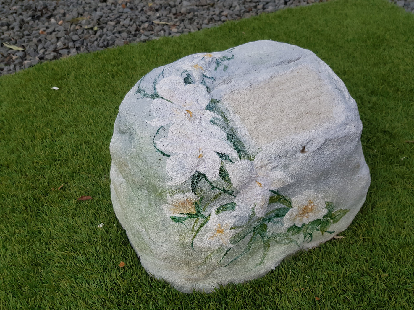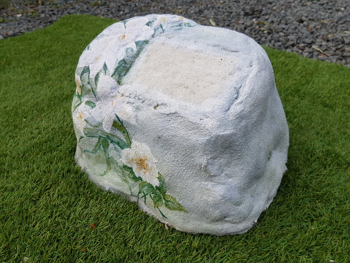 Memorial Rock Urns are a loving practical alternative for the safe keeping of a loved one's ashes. This Memorial Rock Urn has a small internal sealed container for partial ash interment. This Partial Ash Urn Memorial rock has an incorporated flat space for a 100 mm x 75mm x4.5mm industry standard bronze plaque. PLAQUE SOLD SEPARATELY Proudly...