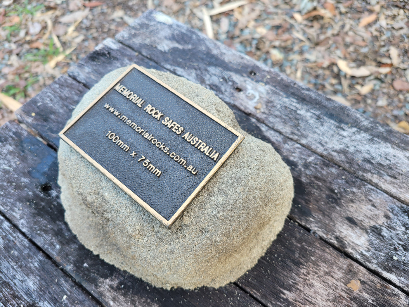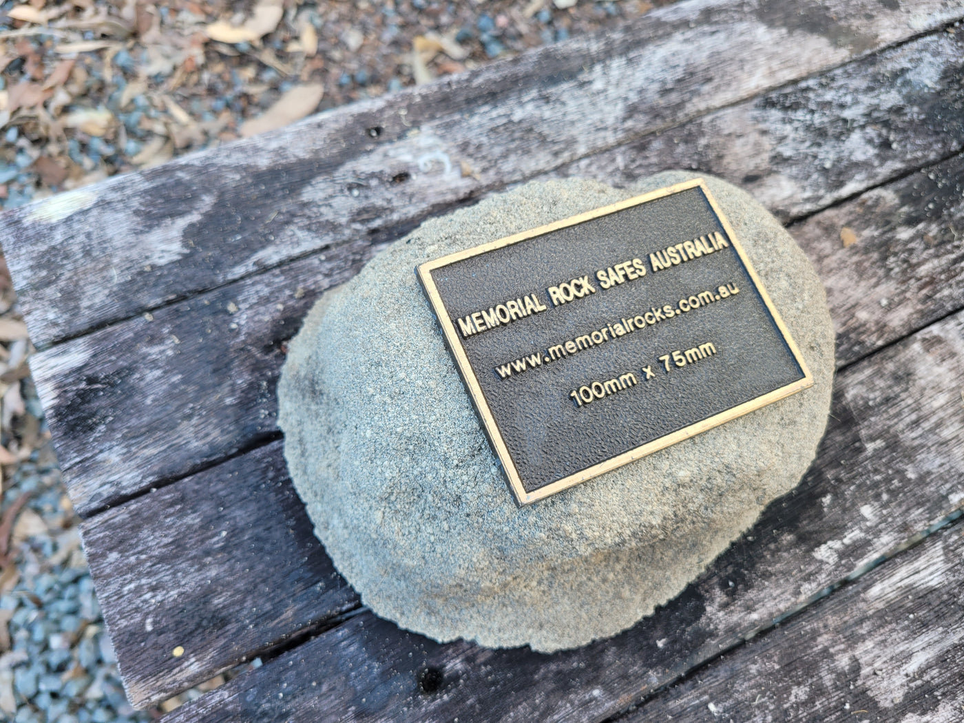 Memorial Rock Urns are a loving practical alternative for the safe keeping of a loved one's ashes. This Memorial Rock Urn has a small internal sealed container for partial ash interment. This Partial Ash Urn Memorial rock has an incorporated flat space for a industry standard bronze plaque 80 mm x 40mm x4.5mm or a 150mm x 100mm x 4.5 mm hear...