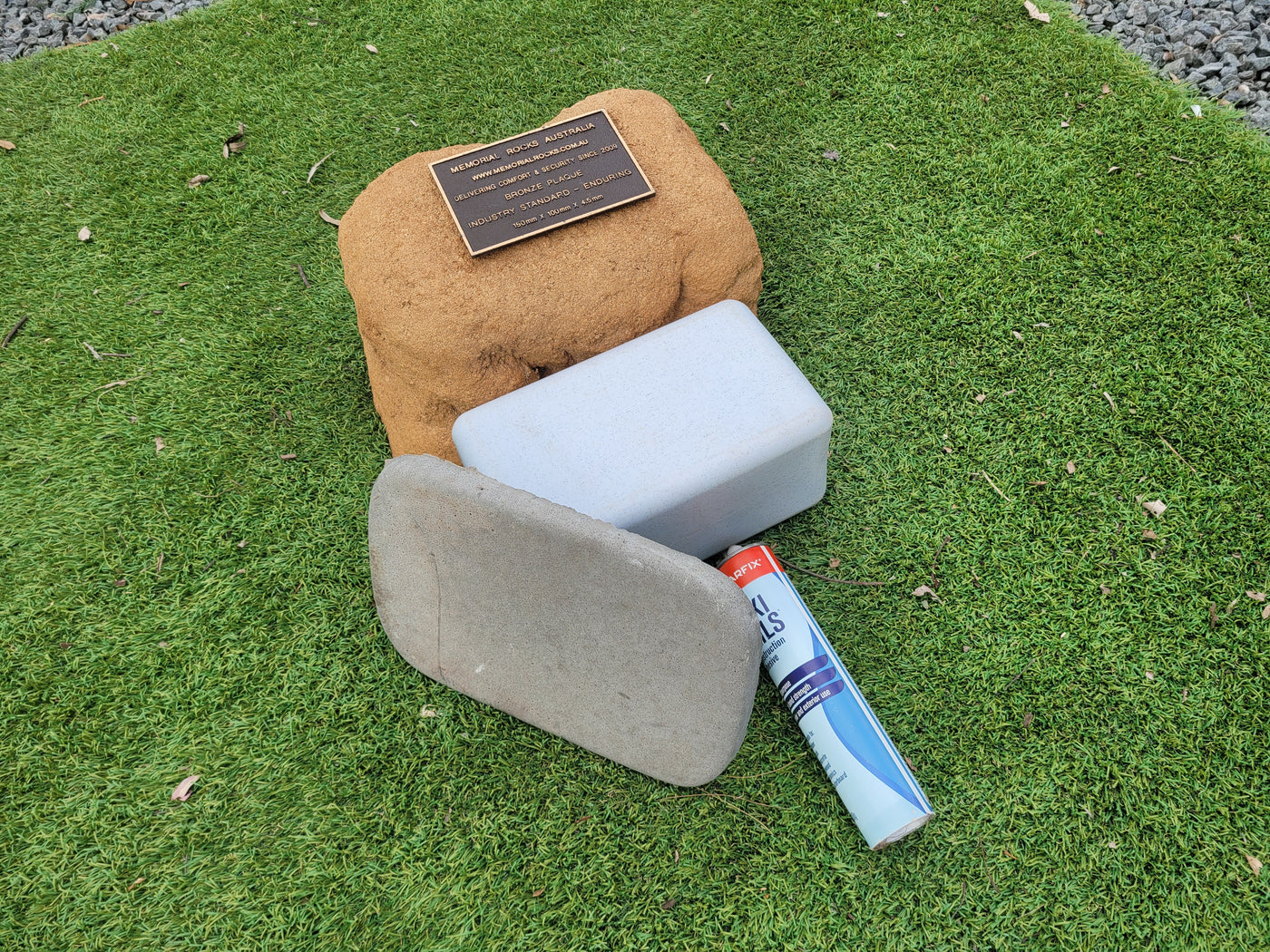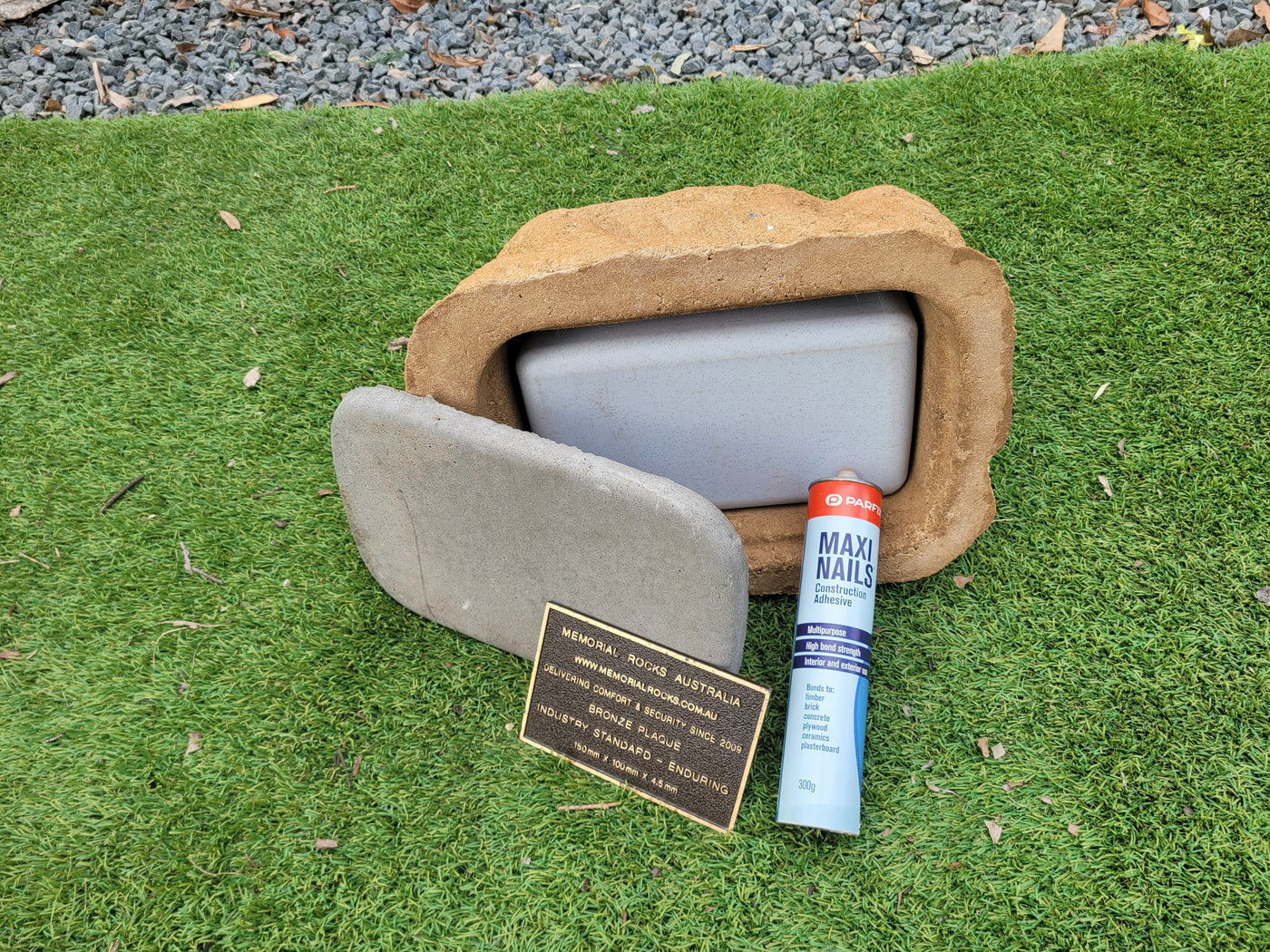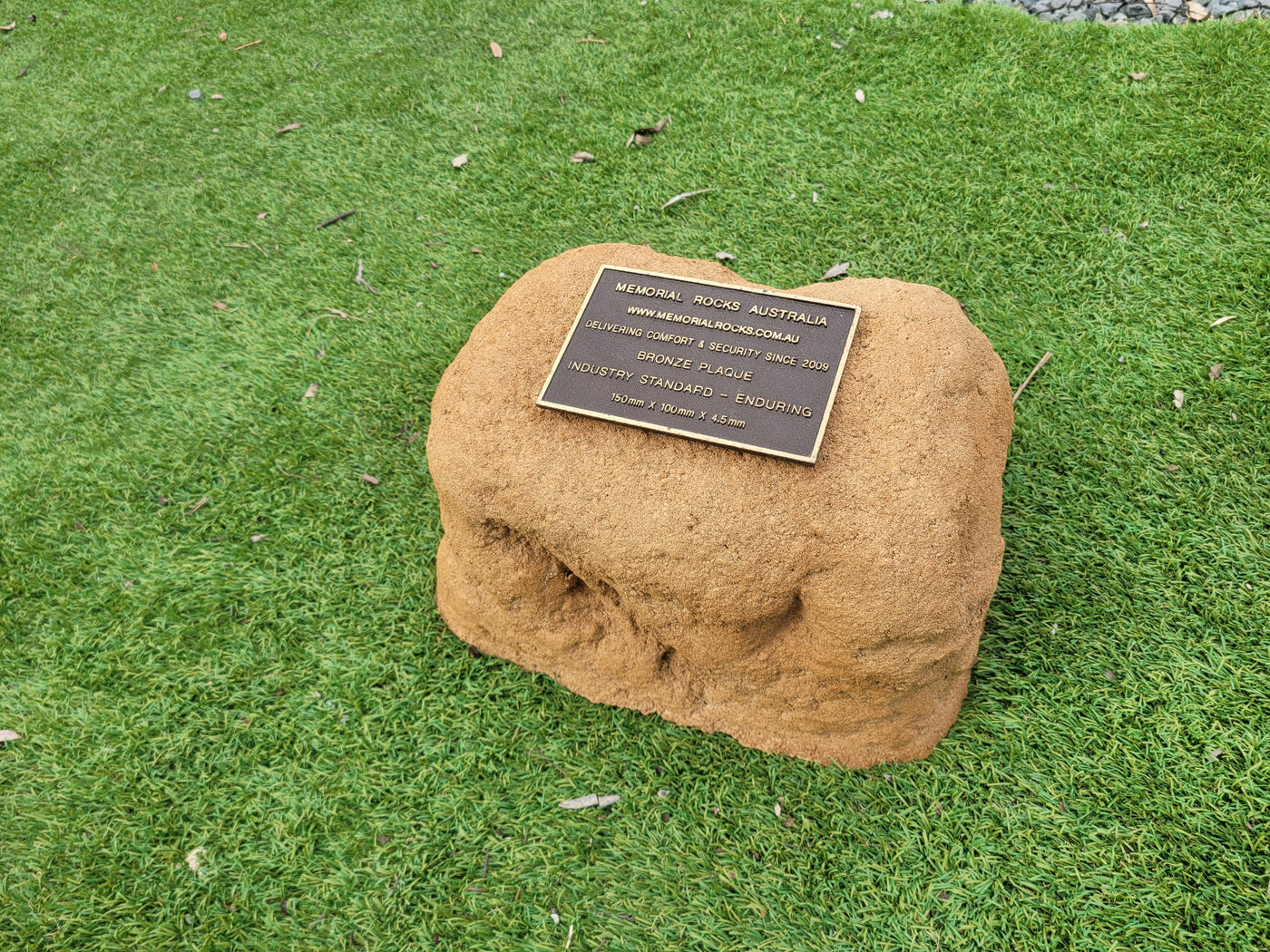 Memorial Rock Urns are a loving practical alternative for the safe keeping of a loved one's ashes. This Memorial rock has an incorporated flat indented recess space for a 150mm x 100mm x4.5mm industry standard bronze plaque. PLAQUE SOLD SEPARATELY Proudly an Australian made, original product. Operating since 2009. Regular size. Lightweight (a...
