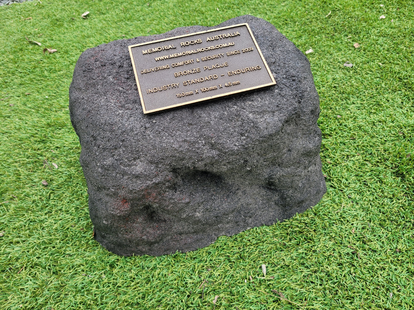Memorial Rock Urns are a loving practical alternative for the safe keeping of a loved one's ashes. This Memorial rock has an incorporated flat indented recess space for a 150mm x 100mm x4.5mm industry standard bronze plaque. PLAQUE SOLD SEPARATELY Proudly an Australian made, original product. Operating since 2009. Regular size. Lightweight (a...