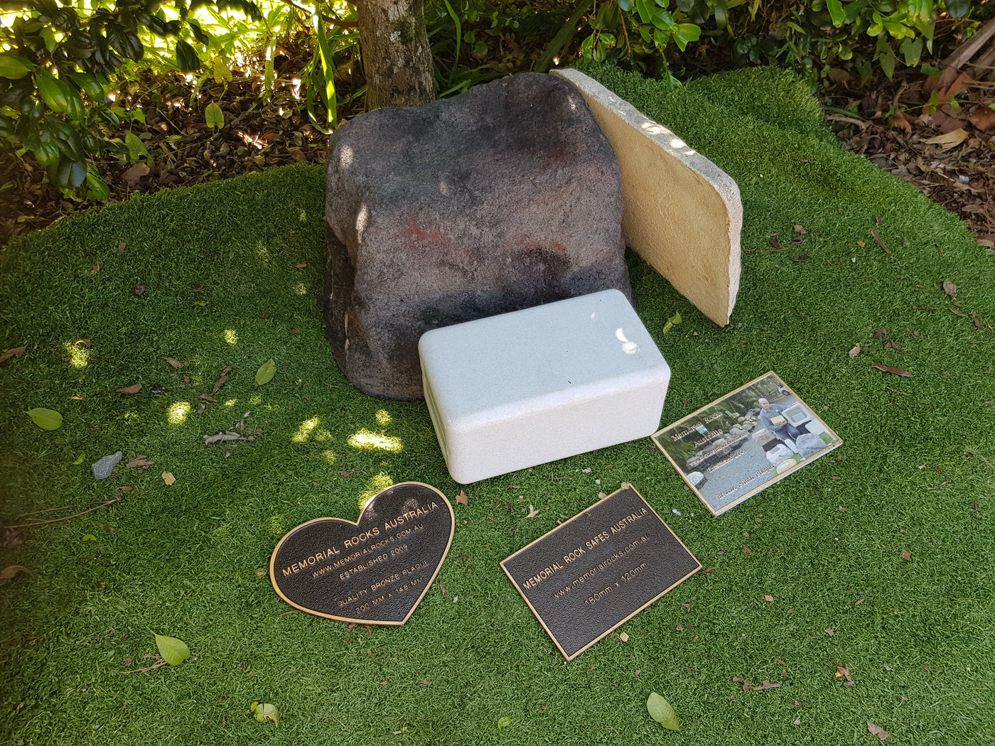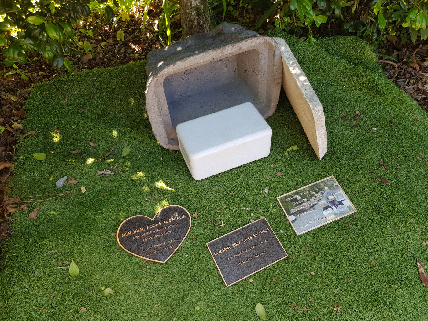 Approx. 24 kg. Memorial Rock/Stone/Urn with a sealable internal cavity for the safe-keeping of a loved one's ashes. Holds one standard Australian sized ash container, plus memorabilia.