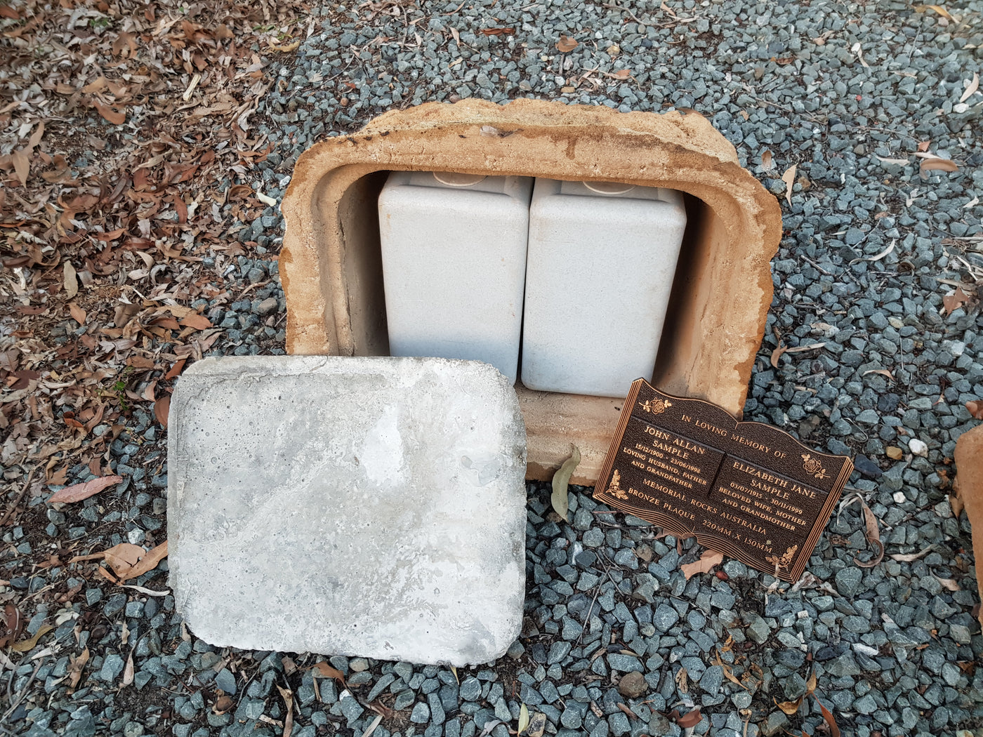 Proudly an original Australian product idea operating since 2009. Large Double Size Weight (approx. 24 kg) Memorial Rock/Stone/Urn with a sealable internal cavity for the safe-keeping of a loved one's ashes. Holds one or two standard Australian sized ash containers, plus memorabilia. Size Approx. 490mm x 410mm x 300mm (external). 320mm x 260mm ...