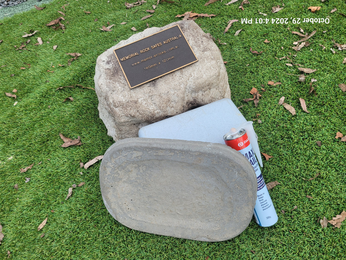 Memorial Rock Urns are a loving practical alternative for the safe keeping of a loved one's ashes. This Memorial rock has an incorporated flat space for up to a 180mm x 120mm x 4.5mm Plaque or our heart plaque. (200mm x 150mm) PLAQUE SOLD SEPARATELY The blue plastic standard Australian sized cremation urn seen in the pictures demonstrates the ...