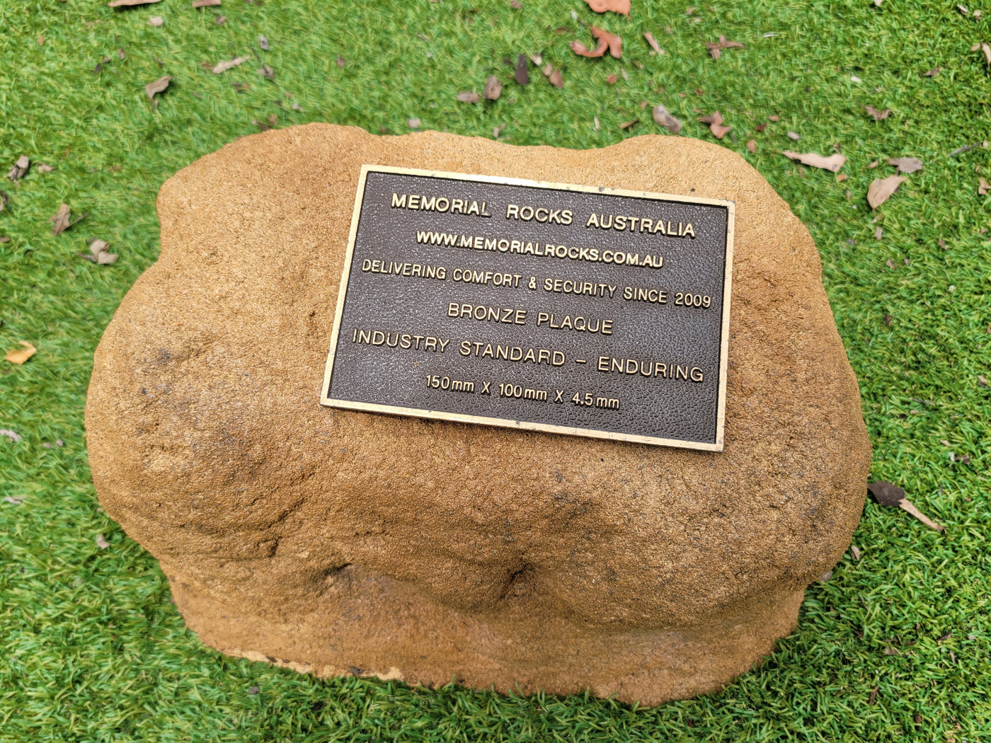Memorial Rock Urns are a loving practical alternative for the safe keeping of a loved one's ashes. This Memorial rock has an incorporated flat indented recess space for a 150mm x 100mm x4.5mm industry standard bronze plaque. PLAQUE SOLD SEPARATELY Proudly an Australian made, original product. Operating since 2009. Regular size. Lightweight (a...
