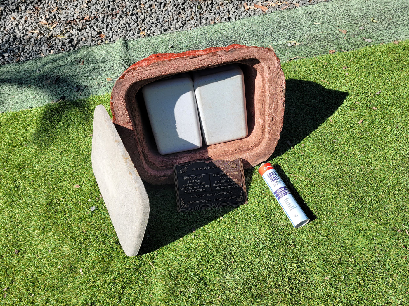 Proudly an original Australian product idea operating since 2009. Large Double Size Weight (approx. 24 kg) Memorial Rock/Stone/Urn with a sealable internal cavity for the safe-keeping of a loved one's ashes. Holds one or two standard Australian sized ash containers, plus memorabilia. Size Approx. 490mm x 410mm x 300mm (external). 320mm x 260mm ...